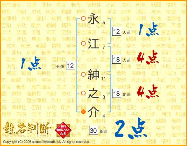 永(5画)江(7画) 紳(11画)之(3画)介(4画)