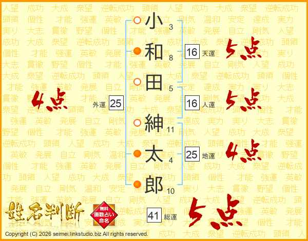 小和田紳太郎さんの総運は41画の5点!