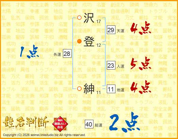 沢登紳さんの総運は40画の2点!