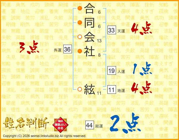 合同会社絃さんの総運は44画の2点!