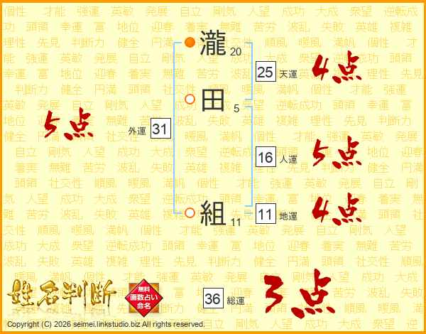 瀧田組さんの天運は25画の4点!