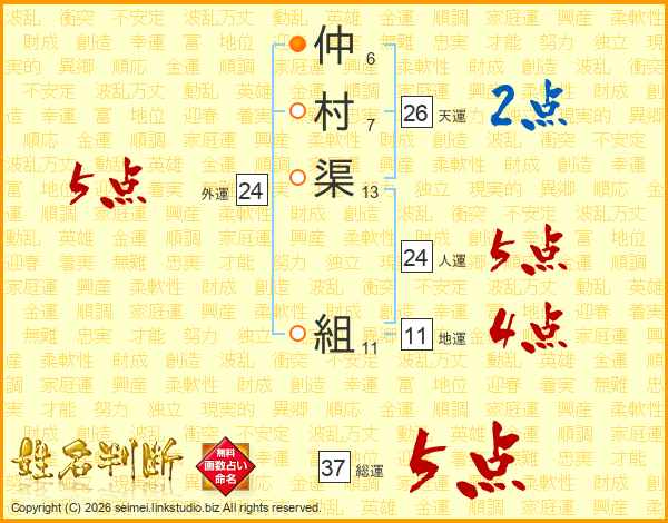 仲村渠組さんの天運は26画の2点!