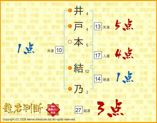 井(4画)戸(4画)本(5画) 結(12画)乃(2画)