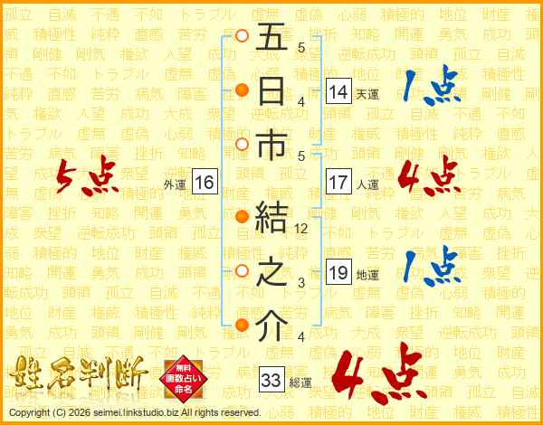 五(5画)日(4画)市(5画) 結(12画)之(3画)介(4画)