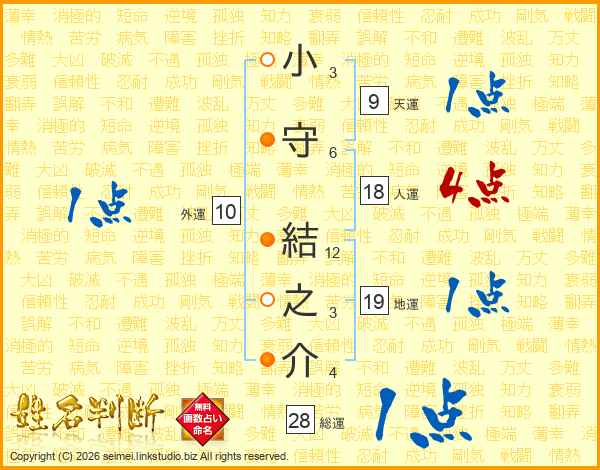 小守結之介さんの総運は28画の1点!