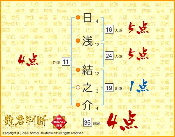 日(4画)浅(12画) 結(12画)之(3画)介(4画)