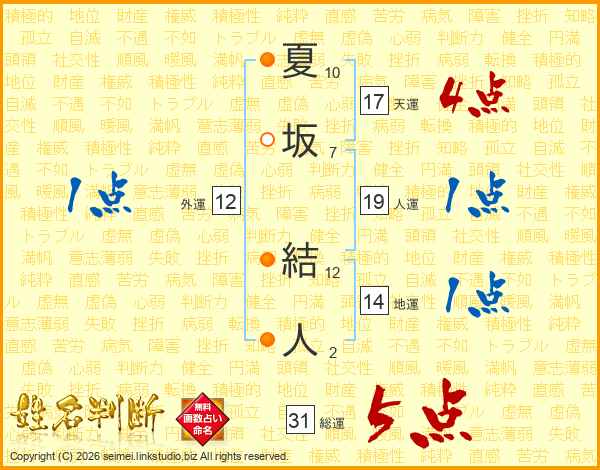 夏坂結人さんの総運は31画の5点!