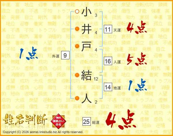 小(3画)井(4画)戸(4画) 結(12画)人(2画)
