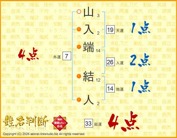 山入端結人さんの総運は33画の4点!