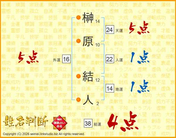 榊原結人さんの総運は38画の4点!