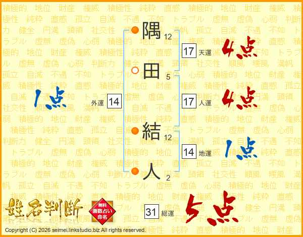 隅田結人さんの総運は31画の5点!