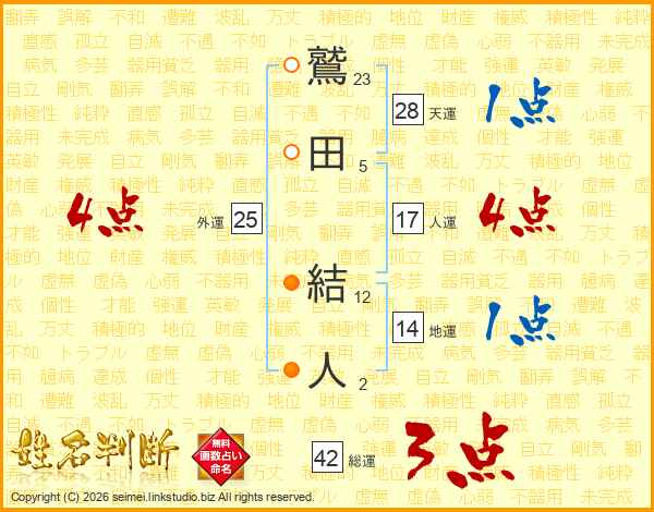 鷲田結人さんの人運は17画の4点!