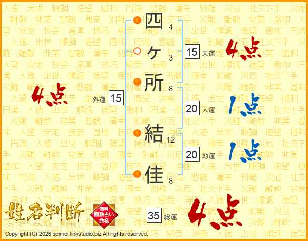 四ヶ所結佳さんの総運は35画の4点!