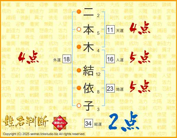 二本木結依子さんの天運は11画の4点!
