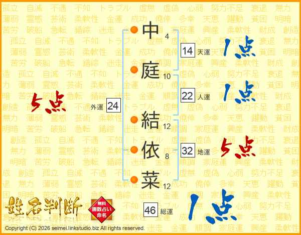 中庭結依菜さんの外運は24画の5点!
