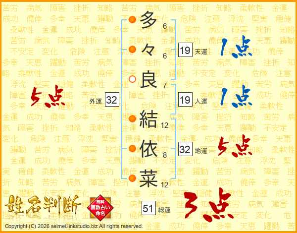 多々良結依菜さんの外運は32画の5点!