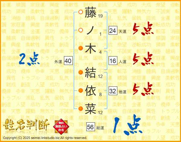 藤ノ木結依菜さんの天運は24画の5点!