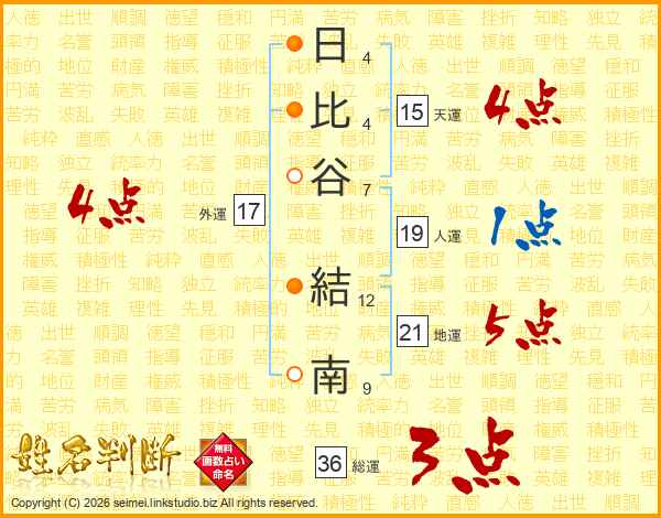 日比谷結南さんの地運は21画の5点!