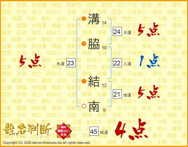 溝脇結南さんの総運は45画の4点!