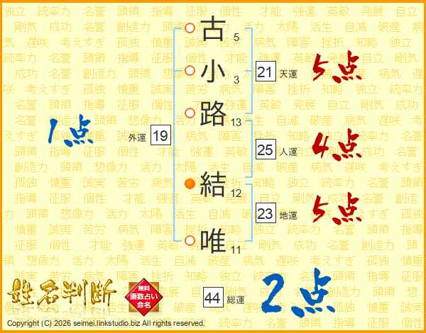 古(5画)小(3画)路(13画) 結(12画)唯(11画)