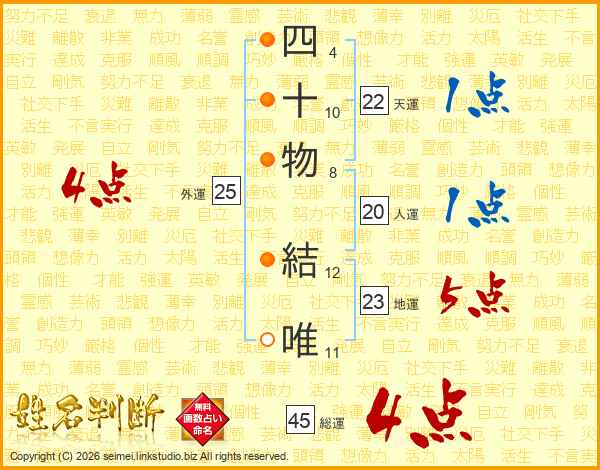 四十物結唯さんの総運は45画の4点!