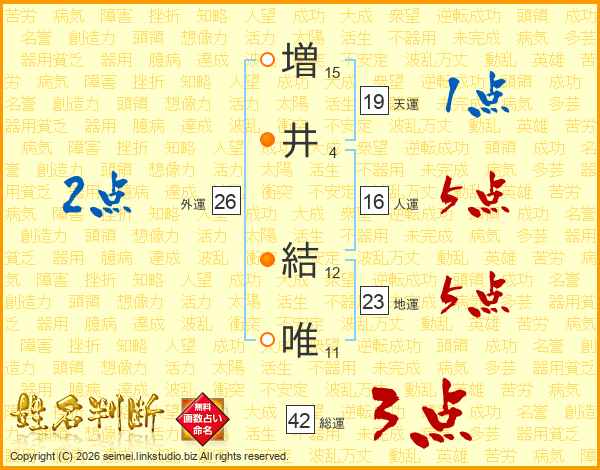 増(15画)井(4画) 結(12画)唯(11画)