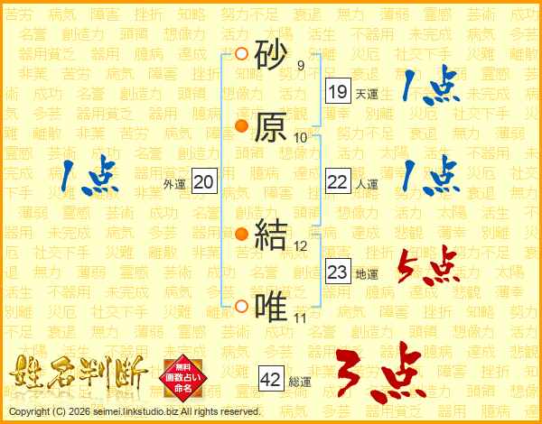 砂原結唯さんの総運は42画の3点!