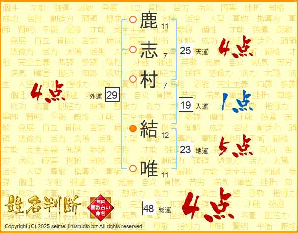 鹿志村結唯さんの天運は25画の4点!