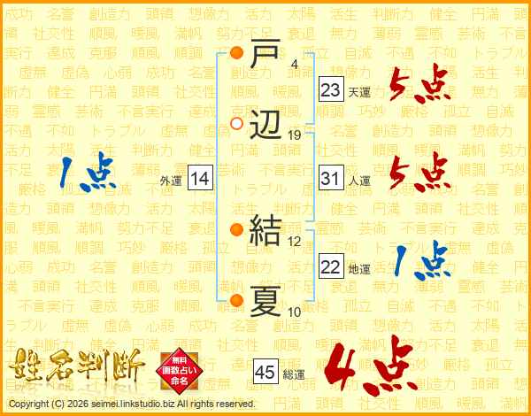 戸(4画)辺(19画) 結(12画)夏(10画)