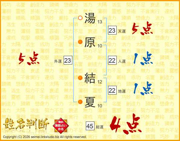 湯原結夏さんの総運は45画の4点!