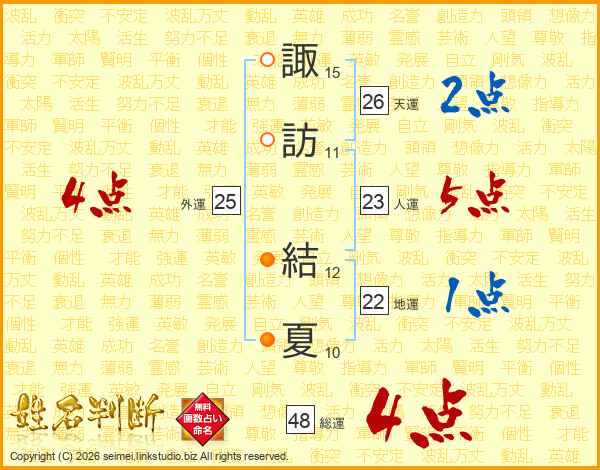 諏訪結夏さんの総運は48画の4点!
