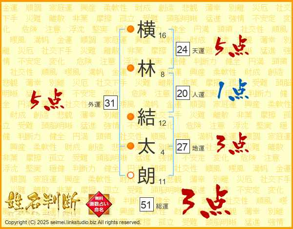 横林結太朗さんの天運は24画の5点!
