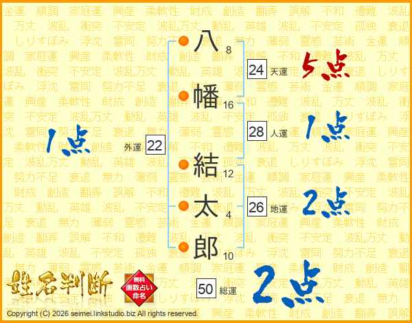 八幡結太郎さんの地運は26画の2点!