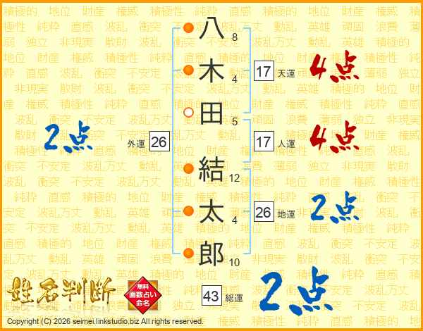 八木田結太郎さんの地運は26画の2点!