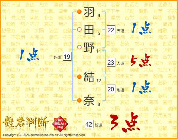 羽田野結奈さんの人運は23画の5点!