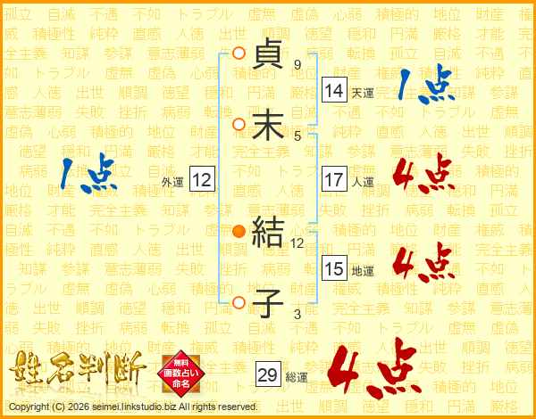 貞(9画)末(5画) 結(12画)子(3画)