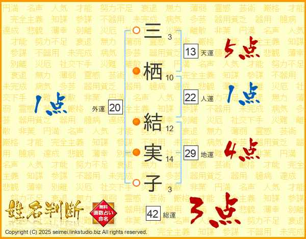 三栖結実子さんの天運は13画の5点!