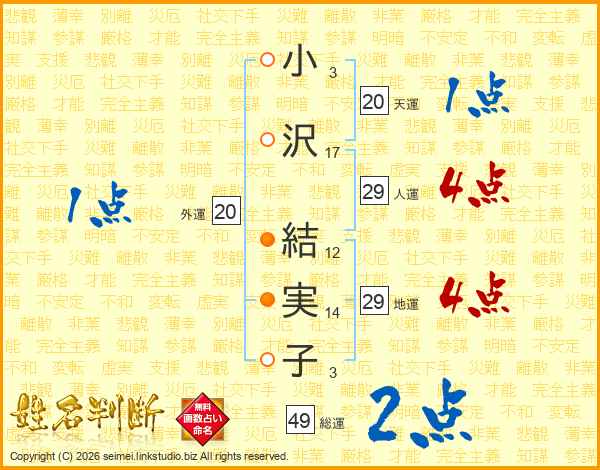 小沢結実子さんの総運は49画の2点!