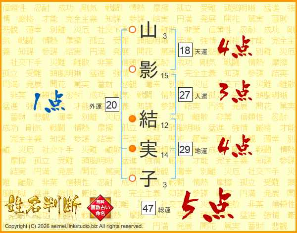山影結実子さんの総運は47画の5点!