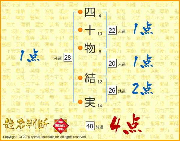 四(4画)十(10画)物(8画) 結(12画)実(14画)