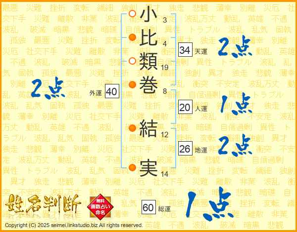小比類巻結実さんの総運は60画の1点!