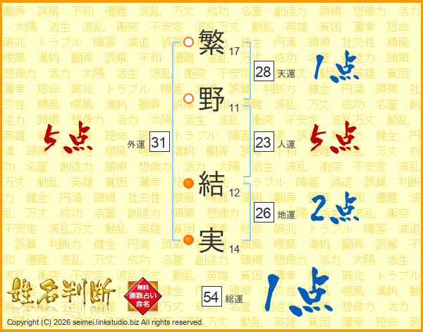 繁野結実さんの地運は26画の2点!