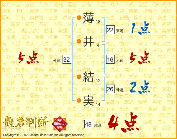薄井結実さんの外運は32画の5点!