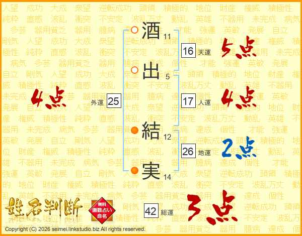 酒出結実さんの地運は26画の2点!