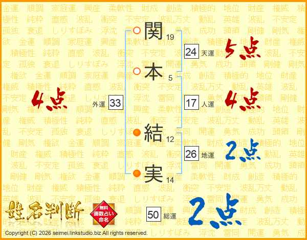 関本結実さんの外運は33画の4点!
