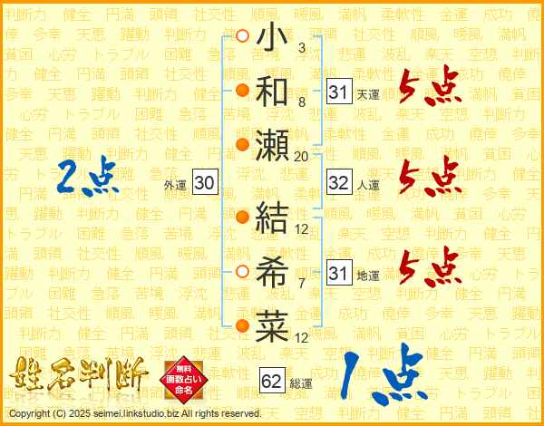 小和瀬結希菜さんの天運は31画の5点!