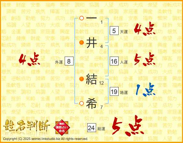 金運 順調 家庭運 興産 柔軟性 財成 創造