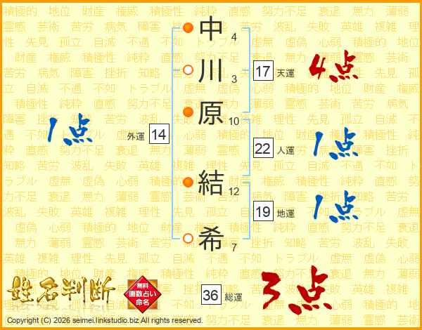 中川原結希さんの外運は14画の1点!