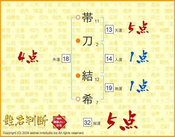 帯刀結希さんの総運は32画の5点!