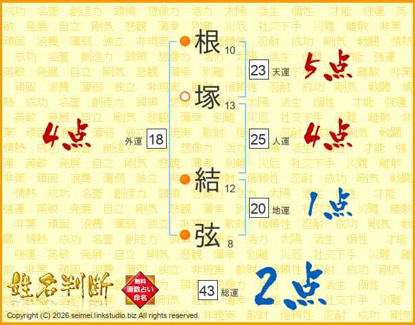 根塚結弦さんの総運は43画の2点!
